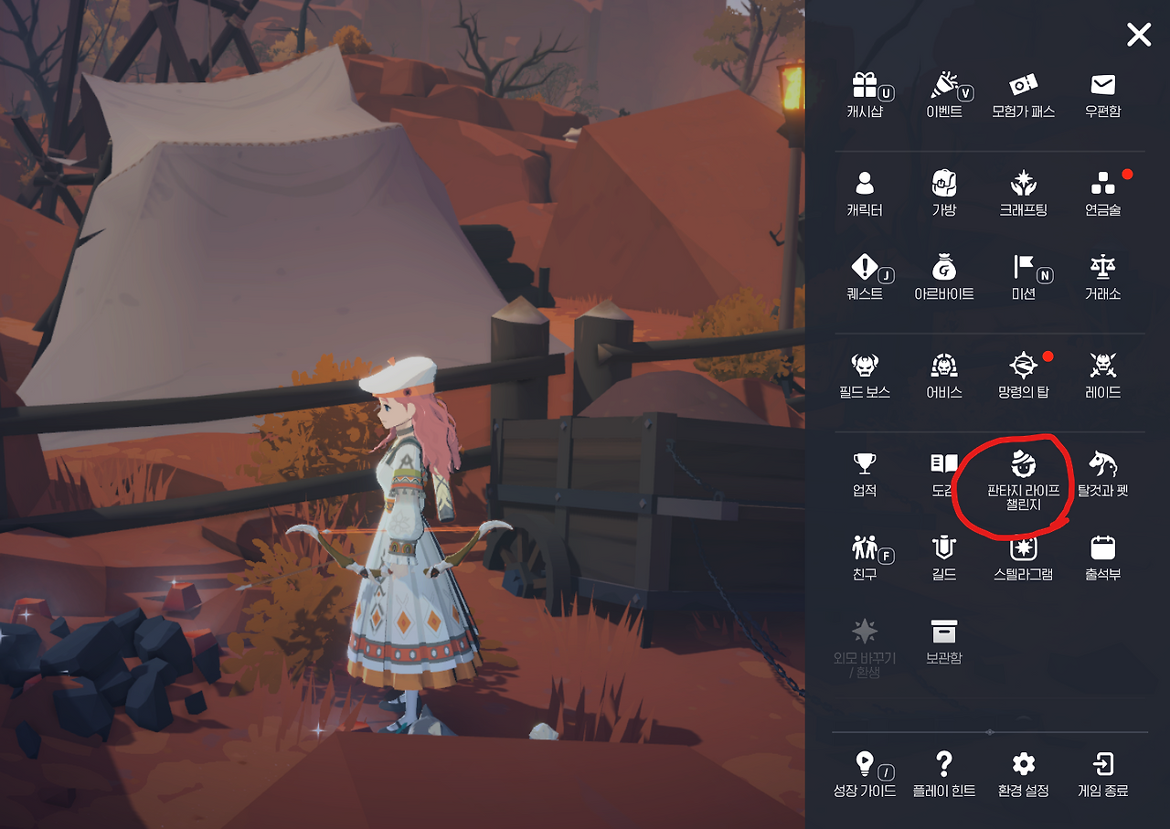 판타지 라이프 챌린지 메뉴