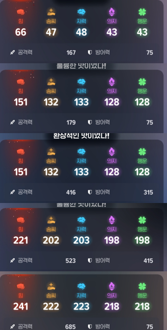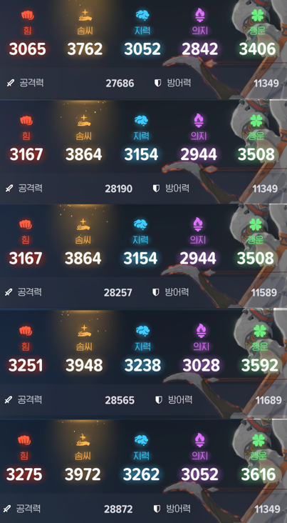 주요 스텟에 따라 힘특화/솜씨특화/지력특화 음식이 있는데요.