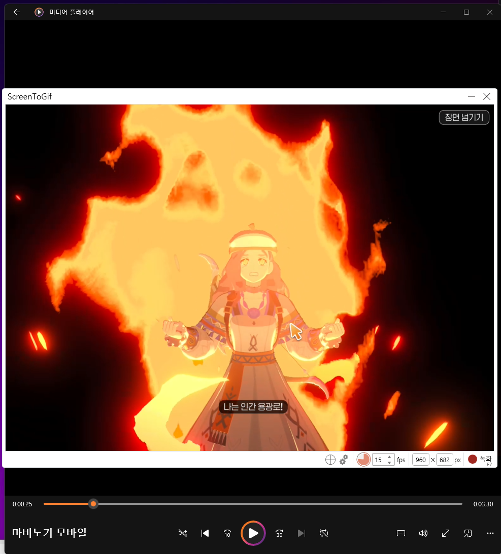gif로 만들기 위한 소스를 우선 녹화 해야겠죠!