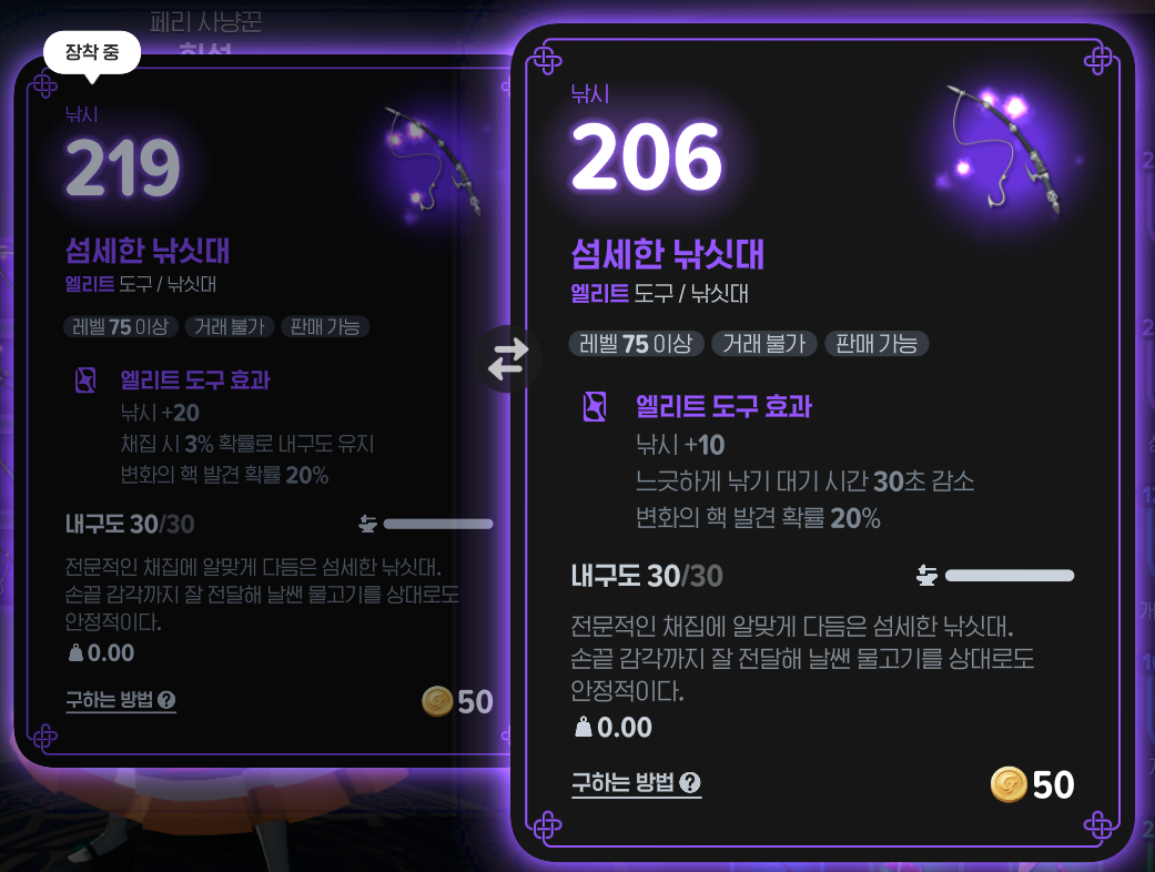 제작대 3레벨에서는 엘리트 등급 낚싯대까지 얻을 수 있다.