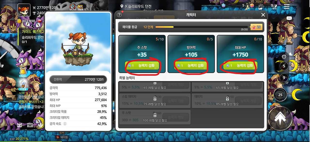레벨업을 했다면 캐릭터 스탯을 찍어줍니다.