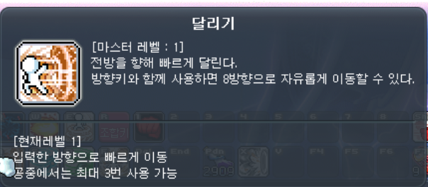 가기전에 준비할것 : '제자리 멀리뛰기' 와 '달리기'를 퀵슬롯에 넣어둡시다.