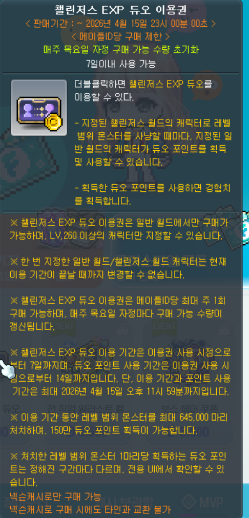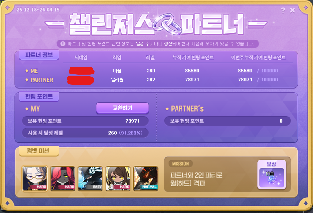 챌린저스 서버에서의 능력치를 보조해주는 이벤트 입니다.