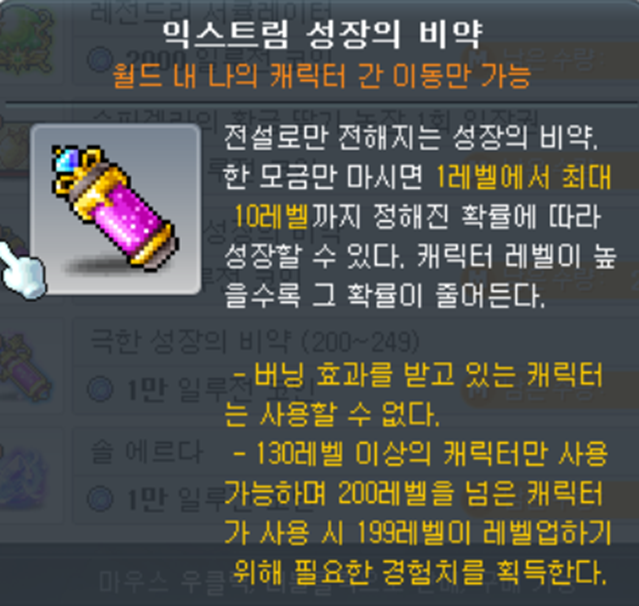 [메이플스토리] 익스트림 성장의 비약(130~199) 효율표(익성비)