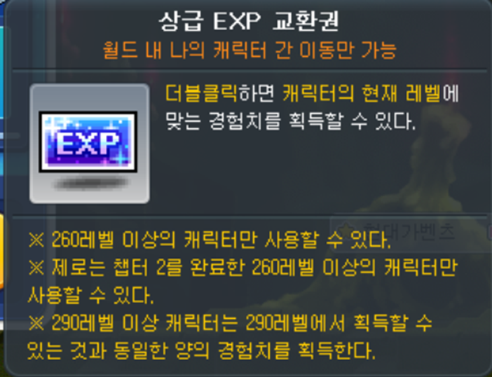 260 이상의 캐릭터만 쓸수 있는 경험치 쿠폰입니다.