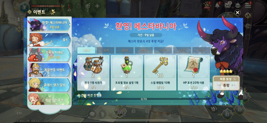 1~2일차는 괜찮지만 4일차 이후부터는 사실상 무과금 유저가 달성하기 힘들다.