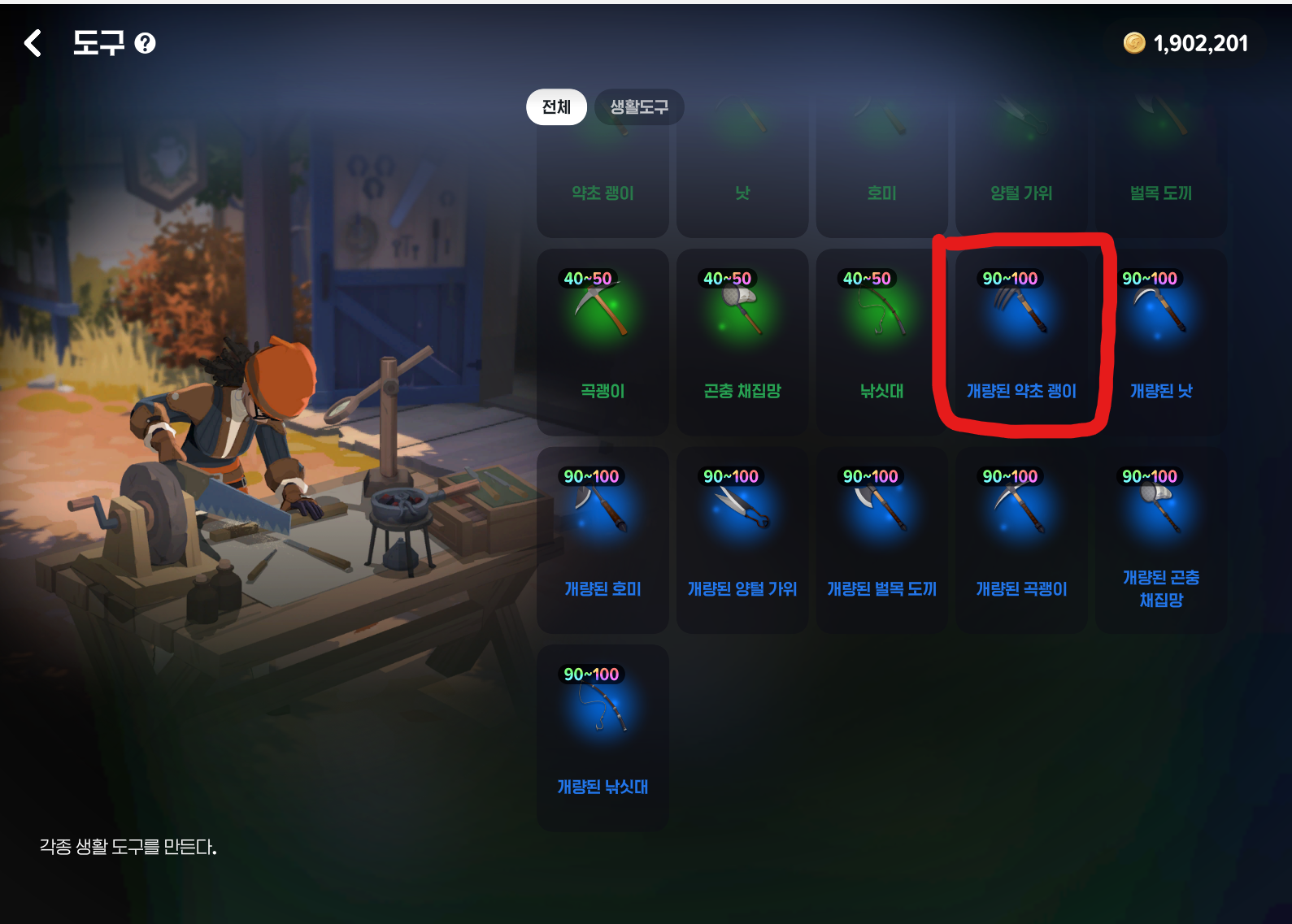 파란 도구 만들어서 채집하면 굉장히 수월하게 얻어지는게 체감이 된다.