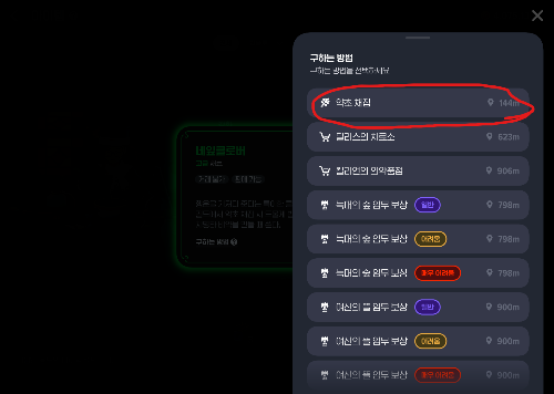 약초채집 메뉴에서 원하는 허브를 눌러서 해당 허브가 있는 포인트로 이동한 후, 네잎클로버 채집을 시도하여 무한채집을 진행한다.