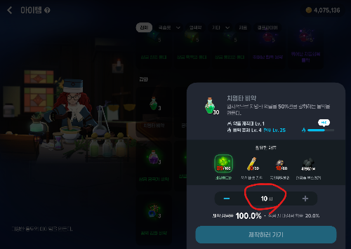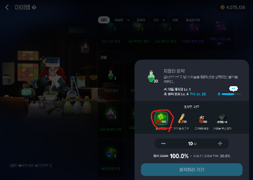 제작-아이템-치명타비약-수량10개설정-네잎클로버-구하는방법-약초채집