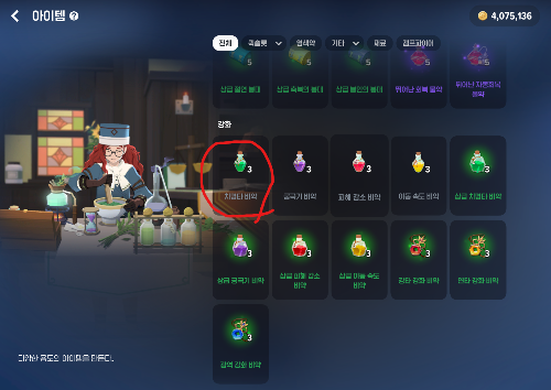 최상급 회북 물약 제작 노가다로 아주 소액이지만 골드를 벌 수 있다.