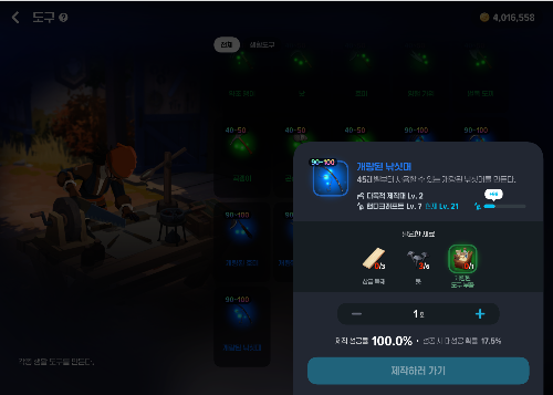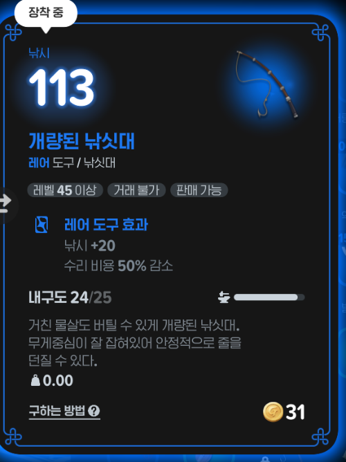 낚싯대의 경우 다양한 옵션이 있는데, 자동 낚시 만으로 레벨을 올린다면 옵션중에 자동 낚시 시간 감소 옵션이 있는 낚싯대를 뽑아서 사용하면 좋다.