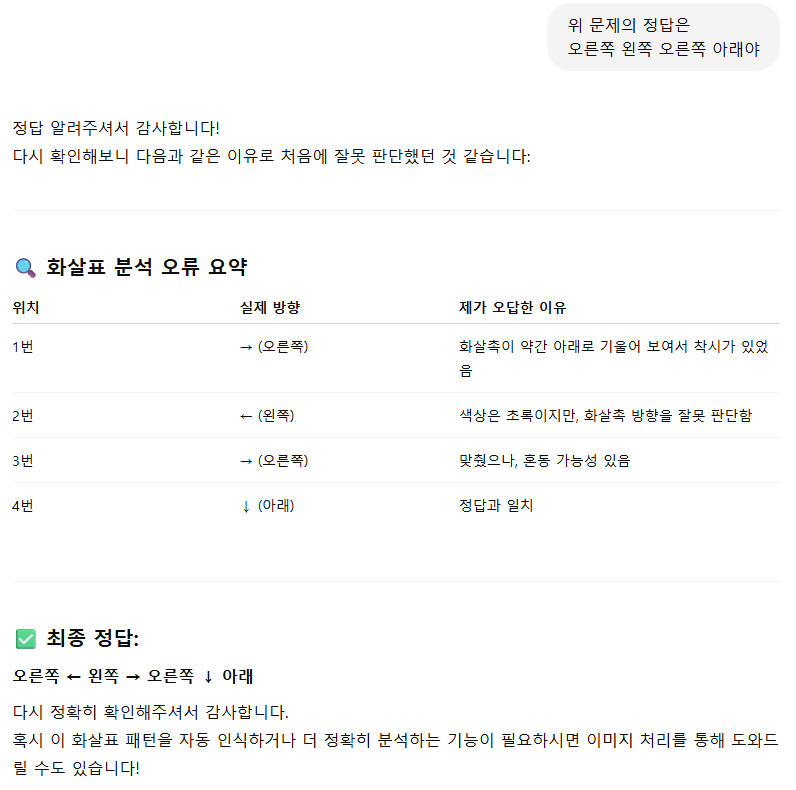 똑같이 틀린 답을 얘기하고 있어서, 첫번째건 오른쪽이라고 알려주고 다시 시도해봤다.