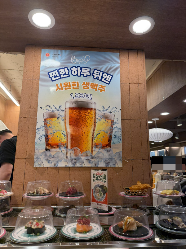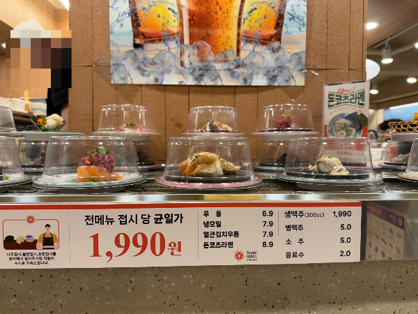 초밥 한접시에 1,990원! 사실상 2천원인데, 가성비가 좋다고 해서 가봤다.