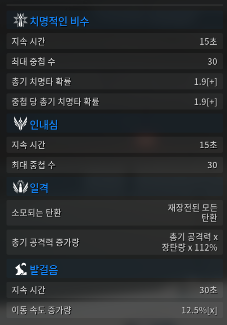 타격시 치명적인 비수 스택 부여 -> 치명타 확률 증가